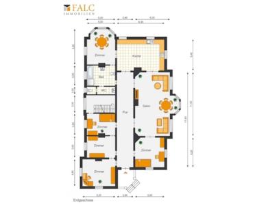 Das Erdgeschoss bietet sechs Zimmer, eine riesige Küche und ein Bad mit zusätzlichem, separaten WC.