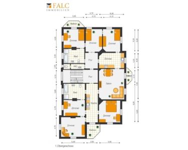 Im ersten Obergeschoss befinden sich derzeit zwei großzügige Ferienappartments jeweils mit Küche, Bad und mehreren Zimmern.