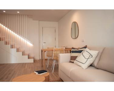 Diese Wohnung eignet sich perfekt für ein Paar oder eine Familie und bietet Ihnen im 1. Dachgeschoss ein schönes Wohn-/Esszimmer mit offener Küche und Zugang zum Balkon, zwei Schlafzimmer sowie ein Tageslicht-Badezimmer mit Dusche, Waschbecken und WC und eine Diele mit Aufgang zum 2. Dachgeschoss.