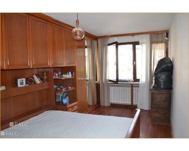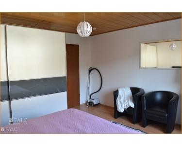 Im Elternschlafzimmer befindet sich ein massiv eingebauter Schrank mit einem Doppelbett. Dieses gehört zur Wohnung.