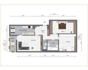 Neben dem Wohnbereich, sowie Küche und dem Schlafzimmer gibt es ein drittes Zimmer. Die Wohnung verfügt über ein Bad, ein Gäste-WC sowie einen schönen Balkon.
