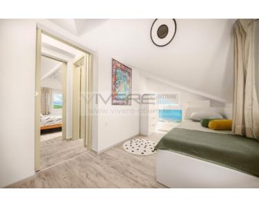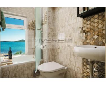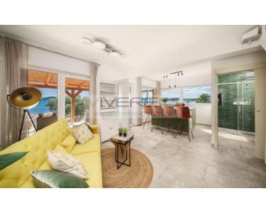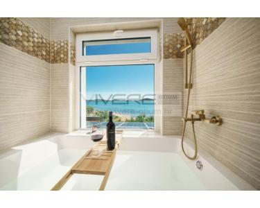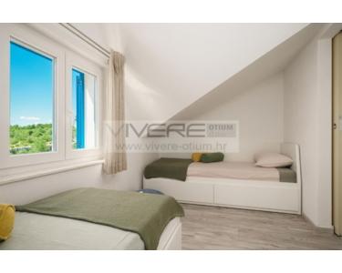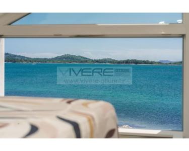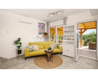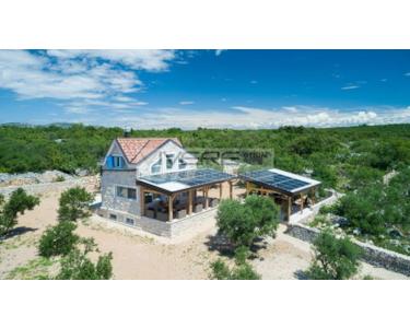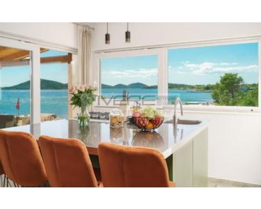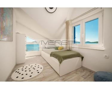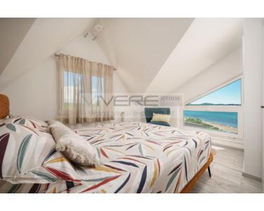 Die Villa besticht durch ein authentisches Außendesign mit 105 m² Wohnfläche, verteilt auf drei Etagen, auf einem großzügigen Grundstück von ca. 1.200 qm. Das offen gehaltene Erdgeschoss umfasst die Küche, das Esszimmer und das Wohnzimmer mit viel Tageslicht und spektakulärem Meerblick. Die südliche Ausrichtung der Villa und die großen Glasfronten verbinden den Wohnraum direkt mit der überdachten Außenterrasse von 20 m² und unterstreichen den mediterranen Lebensstil, der Innen- und Außenbereich fließend verbindet. Der Pavillon mit Grill im großen Garten ist der perfekte Ort, um den berühmten Zauber der mediterranen Küche zu genießen. Bereiten Sie frische Mahlzeiten auf dem Außengrill zu und genießen Sie ein Glas edlen Tropfens auf der Terrasse oder nehmen Sie im Einklang mit dem Rauschen der Wellen ein Sonnenbad auf einer Liege direkt am Meer. Ein elegantes, voll ausgestattetes Badezimmer rundet das Angebot auf dieser Etage ab. Eine Innentreppe führt in die erste Etage mit zwei Schlafzimmern und einem zusätzlichen Badezimmer mit Badewanne. Aufgrund der Ausrichtung zum Meer genießen alle Zimmer einen faszinierenden Blick auf die kristallklare Adria und die vorgelagerten Inseln. Die Villa ist klimatisiert, komplett möbliert und völlig autark in ihrer Versorgung. Die Stromversorgung erfolgt über 22 Solarpaneele, mit der Option weitere Paneele, zu installieren; für die Wasserversorgung sorgt eine Zisterne oberhalb der Villa.