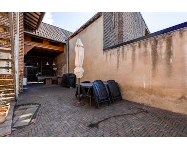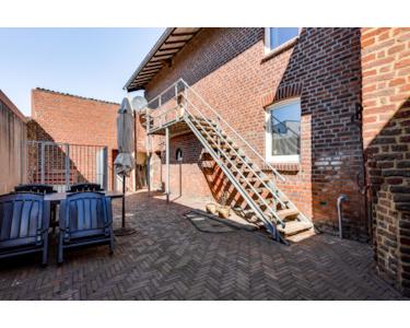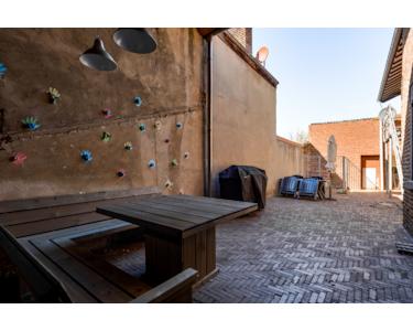 Vollständig umschlossener, geräumiger Innenhof mit Zierpflaster.
