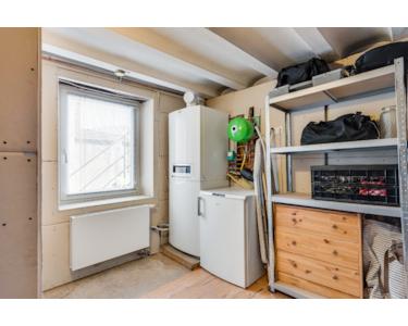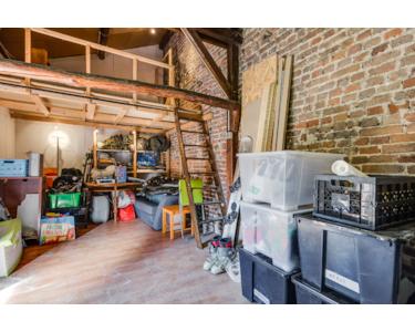 Abstellraum (6,64 x 3,11 m) mit alter Dusche, Boiler und Zwischengeschoss. Dieser Abstellraum ist über eine Außentreppe über den Innenhof erreichbar.