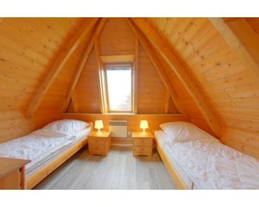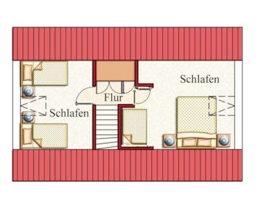 1 Schlafzimmer mit Fenster, Doppelbett und Einzelbett