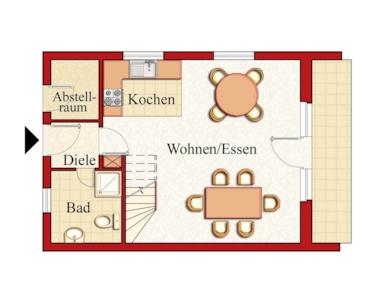 0465124 Das lichtdurchflutete Nurdachhaus wird mit kompletten Inventar verkauft. Das Ferienhaus besteht aus einem großzügigen Wohn-/Essbereich mit EBK, Eßtisch mit Stühlen sowie ein solider eingerichteter Wohnbereich. Ein Duschbad befindet sich im EG. Im OG befinden sich zwei Schlafzimmer und 1 WC. Terrasse und der großzügige Garten laden zum Verweilen ein.