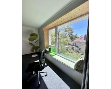 Der Campus verteilt sich auf zwei Gebäude mit 745 m² in einem Design-Neubau und 756 m² in einer hochwertigen Altbauvilla.