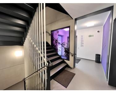 Im Neubau bestechen die Flächen durch moderne Ausstattung, wie zum Beispiel CAT 7-Datenverkabelung, klimatisierter Serverraum und elektronisches Schließsystem.