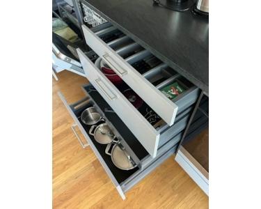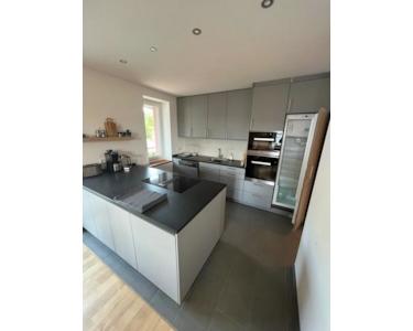 Erd- und Obergeschoss (EG barrierefrei), von ihrer Raumaufteilung nahezu identisch, bieten Küche Wohn- Essbereich ein kleines und ein großes Bad sowie Raum für vier große Schlafzimmer von ca. 17,65 – 19,67 m². In allen Geschossen erfolgt die Beheizung sämtlicher Räume über Deckenheizungen. Eine Terrasse im EG sowie ein Balkon im OG erlauben Aufenthalte oder die Einnahme von Mahlzeiten unter freiem Himmel, wobei die Terrasse im EG vom Balkon im OG überdacht wird. Im Gegensatz zum OG ist das EG sowie das sich in ihm befindliche kleinere Bad in seinem Zugang und seiner Ausstattung barrierefrei. Die hochwertig ausgestatteten zu den Essbereichen und den Wohnzimmern offenen und modernen Küchen mit zentralem Kochblock machen das Kochen zum gemeinsamen kommunikativen Erlebnis. Der Bodenbelag der Küchen ist in grauen Bodenfliesen gehalten.