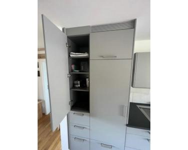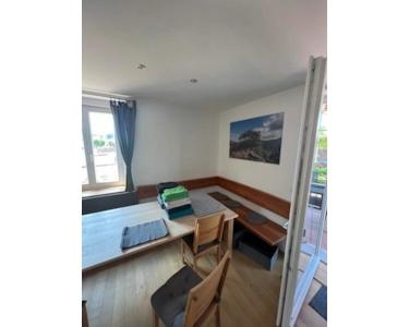 Am 2,40 m langen und 1 Meter breiten Esstisch der auf bis zu 3 Meter verlängert werden kann finden dann auf der Eckbank und zusätzl. Stühlen mindestens 10 Personen Platz um ihre Mahlzeit zu sich zu nehmen.