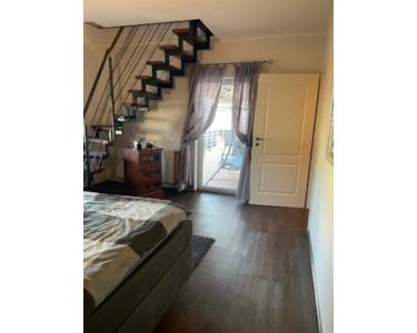Nun gelangen Sie, wieder über die Treppe, in das Obergeschoss. Hier befindet sich die zweite Wohnung. Auf ihren ca. 90m² beherbergt sie eine Küche mit integriertem Essbereich, ein gemütliches Wohnzimmer, ein Tageslichtbad mit Badewanne und Anschluss für die Waschmaschine, sowie zwei Schlafzimmer mit Ausgang zum Balkon - auf dem Sie den Sonnenuntergang genießen können.