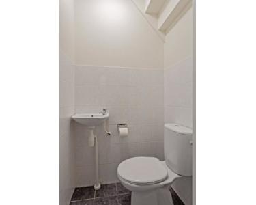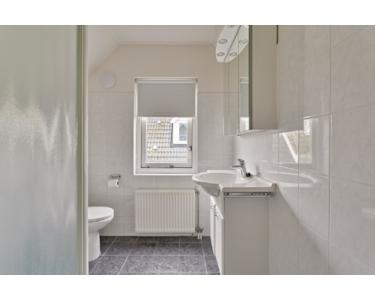 Dieser Waschraum hat helle Wandfliesen und dunkle Bodenfliesen, was ihm ein schönes Aussehen verleiht. In diesem Raum finden Sie die zweite Toilette, eine Duschkabine, ein Waschbecken und eine Badewanne. Unter dem Waschbecken befindet sich ein Schrank, in dem zum Beispiel Handtücher aufbewahrt werden können, und über dem Waschbecken ist ein Spiegelschrank mit Beleuchtung, der natürlich ideal ist, um sich zu rasieren, zu schminken oder die Haare zu kämmen.