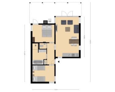 Das große Fenster lässt viel Licht herein. Öffnen Sie die Flügeltüren und holen Sie die Natur ins Haus. Das Wohnzimmer beherbergt auch den Esstisch und die offene Küche. Schöne Fußböden in warmen Holztönen und die kontrastierenden weißen Wände runden das Bild ab. Der Boden setzt sich übrigens im ganzen Haus fort. Beheizt wird das Haus mit einer Fußbodenheizung.