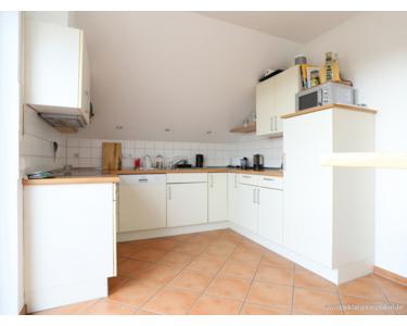 Die geräumige Küche hat einen hellen Fliesenspiegel & verfügt über eine Einbauk. inkl. Elektrogeräte. Hier sowie im Bad und im Flur sind die Böden mit Fliesen ausgestattet. Auch von hier aus haben Sie einen Balkonzugang.