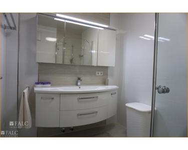 Die Wohnung ist mit schönen und neutralen Böden ausgestattet. Bei den Fließen handelt es sich um große, italienische Fließen (hell). Das Badezimmer ist deckenhoch gefliest.