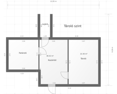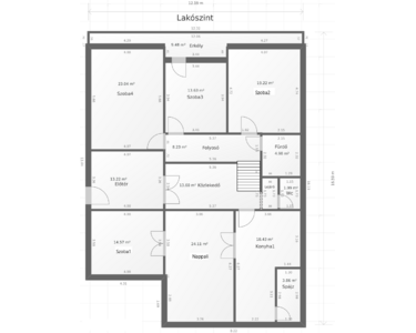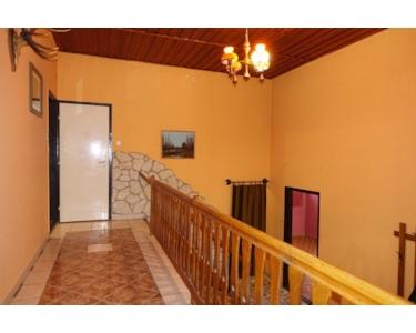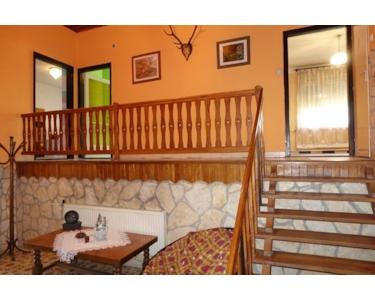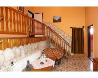 Az épületet Konyha+ebédlő, 2 szoba, wc, kamra, előszoba, 60 m2-es galéria, emeleten: fürdő+wc, 3 szoba, egyik konyhának is használható, 20 m2-es erkély, alsó szinteken garázs 2 tároló, (ami további garázzsá alakítható) és pince helyiségekből alakították ki.