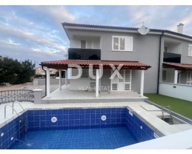 Wir vermitteln beim Verkauf einer luxuriösen Doppelhaushälfte mit Pool und Meerblick aus der 1. Etage. Die Doppelhaushälfte liegt am Ende einer Sackgasse in ruhiger Lage 600 Meter vom Meer entfernt. Da es sich um das letzte Anwesen in Folge handelt, ist Ruhe und Frieden garantiert. Darüber hinaus ist eine Seite komplett von Grün umgeben. Die Villa besteht im Erdgeschoss aus einem Wohnzimmer, einer Küche, einem Badezimmer, einem Abstellraum und einer überdachten Terrasse, während sich im ersten Stock zwei Schlafzimmer, ein Badezimmer und ein Balkon befinden. Es ist mit Fußbodenheizung, Klimaanlage, hochwertiger Keramik und SCHUCO-Zimmerei ausgestattet. Es verfügt über einen Garten mit Swimmingpool, Terrassen/Sonnenliegen, einen Garten und zwei Parkplätze. Die Immobilie ist in das Mehrwertsteuersystem einbezogen, sodass Käufer von der Zahlung der Immobilienumsatzsteuer befreit sind. Sehr geehrte Kunden, die Vermittlungsprovision wird gemäß den Allgemeinen Geschäftsbedingungen berechnet. https://www.dux-nekretnine.hr/opci-uvjeti-poslovanja