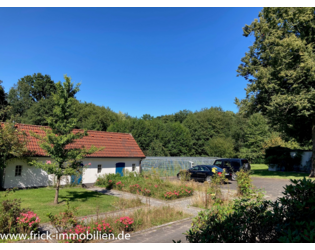 Das hier von uns im Rahmen eines qualifizierten Makler-Alleinauftrages angebotene Grundstück (19 ha) in Fast-Alleinlage ist mit einem großen Wohnhaus (761 m² Wohnfläche + Empore + Teilkeller) bebaut. Das Gebäude besteht aus 2 Wohneinheiten ( Vorderhaus Baujahr 1920 mit Wintergarten/Veranda, Terrasse und Balkone 364 m² + 29 m² Empore und Loft- und studioartiges Hinterhaus Baujahr 2000 mit 397 m² und Balkonen und Terrassen). Der ältere Teil des Hauses wurde in vollem Umfang modernisiert und wäre auch in 2 Wohneinheiten aufteilbar, zumal es auch einen zweiten Zugang gibt. Der hintere Teil des Hauses ist luxuriös ausgestattet, hat auf beiden Ebenen dreiseitig belichtete Großräume mit bodentiefen Fenstern (Wohnhalle und Ausstellung unten und ca. 200 m² großes Wohn-Atelier-Studio oben). Weiterhin gibt es einen Hühnerstall mit Freilauf-Voliere, eine Doppelgarage, eine Remise, ein großes, neues Gewächshaus, Wiesen und Teiche. Dieses Anwesen bietet vielfältige Nutzungsmöglichkeiten und ist wirklich etwas Besonderes, etwas Einzigartiges.