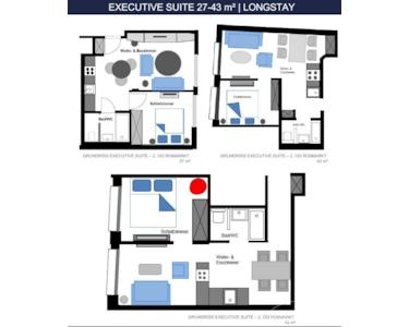 Unsere 2-Zimmer Executive-Suiten bieten höchsten Komfort und Stil. Die Preise gestalten sich wie folgt: