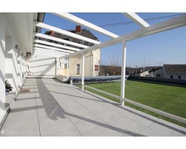Im Herzen liegt das große lichtdurchflutete Wohn-/Esszimmer mit offener Küche. von hier erreichen Sie die ca. 25 m² große Dachterrasse mit Blick über die Dächer von Rengsdorf. Zwei Schlafzimmer und ein Durchgangszimmer bieten auf dieser Ebene verschiedene Nutzungsmöglichkeiten. Wellness erleben Sie im modernen Tageslicht-Badezimmer mit Dusche, Waschtisch, WC und Waschmaschinenanschluss.