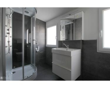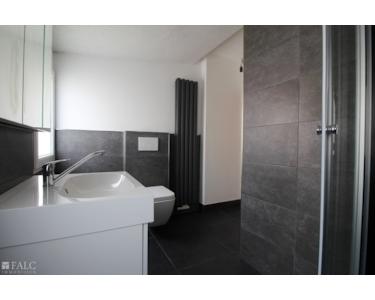 - geflieste Tageslicht-Badezimmer mit Wellness-Dusche, Waschtisch und WC