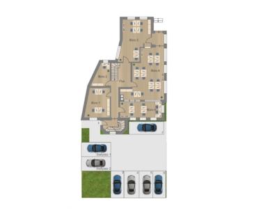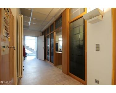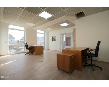 Sie profitieren von einem repräsentativen Eingangsbereich mit automatischer Schiebetür und großzügigen modernen Büro-, Praxis- oder Verkaufsflächen. Die Gewerbefläche teilt sich aktuell in eine Großfläche mit ca. 87 m² und drei Büros mit ca. 35 m², ca. 22 m² und ca. 12 m² auf. Alle Räume sind mit großen Fensterflächen versehen und sind somit hell und freundlich. Das Beleuchtungskonzept sorgt für zusätzliche Helligkeit. Sollte es zu hell sein, sorgen Jalousien für Verschattungsmöglichkeiten. Eine Teeküche, sanitären Anlagen sowie weitere Neben- und Kellerräume befinden sich im Untergeschoss.