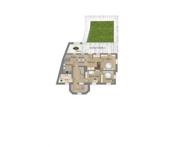 Über die aufgearbeitete rustikale Holztreppe gelangen Sie in das Dachgeschoss. Hier befinden sich zwei weitere Schlafzimmer sowie ein zweites Tageslicht-Badezimmer, ebenfalls mit Dusche, Waschtisch und WC. Das offene Raumkonzept lässt die Einrichtung einer zweiten Küche zu. Alternativ kann dieser Raum aber auch als offenes Büro, Kinderspielzimmer, Hobbyraum o.ä. dienen.