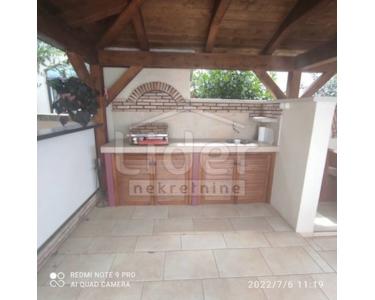 Neben dem Pool befindet sich eine überdachte Sommerküche im Freien mit Terrasse.