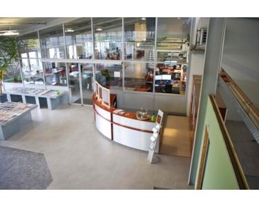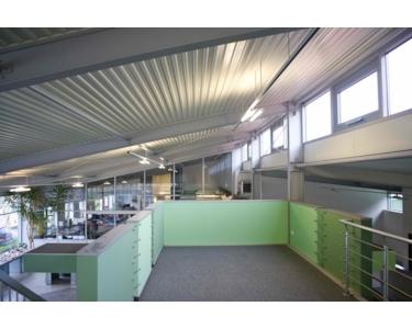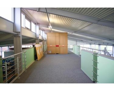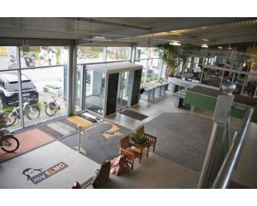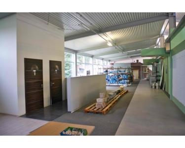 - pflegeleichter Industriefußboden, sowie auch Teppichelemente und Steinteppichelemente