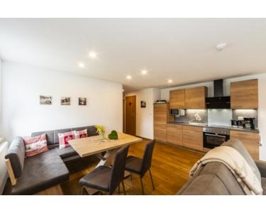 Wohnzimmer mit Sofa und Essecke, 2 Schlafzimmer mit Doppelbett