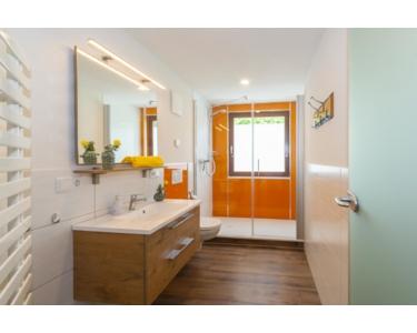 Bad mit Dusche, WC und Waschtisch, 1 separates WC