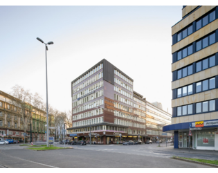 8-geschossiges Büro- und Geschäftshaus, attraktive Naturstein-Granit-Fassade, repräsentativer Eingangsbereich, Personenaufzüge, objekteigene Tiefgarage mit PKW-Stellplätzen.