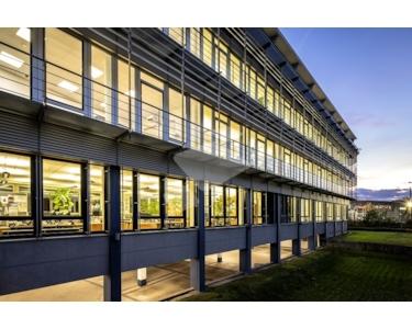 Das viergeschossige Bürogebäude befindet sich im Nordwesten der Stadt Meerbusch Die umgebende Bebauung ist in erster Linie durch Mixed Use Gebäude gekennzeichnet. Das Gebäude verfügt über eine gute Anbindung an den ÖPNV (Haltestelle Görgesheide). Ausgezeichnet ist die Anbindung an den Individualverkehr (Autobahnkreuz A 44 /A 57). Im Rahmen einer Neuvermietung übernimmt der Vermieter die Kosten der Investition in die Erneuerung sämtlicher Oberflächen, WC Anlagen und Küchenbereiche sowie eine neue Raumaufteilung. Darüber hinaus ist der Vermieter bereit umfangreich in das Objekt in Abstimmung mit einem Großmieter zu investieren. Das Objekt verfügt über einen eigenen Kantinenbereich, repräsentative Eingangsbereiche, einen Konferenz und Loungebereich mit Dachterrasse, als auch über anfahrbare (LKW) Serviceflächen sowie bereits über eigenen Solarstrom als auch E-Ladepunkte.