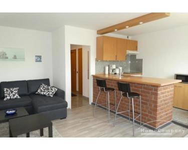 Diese helle und gut ausgestattete Zwei-Zimmer-Wohnung wurde 2019 renoviert. Das Wohnzimmer schließt an die offene Küche mit Esstresen an. In der Einbauküche befinden sich ein Kühlschrank mit Gefrierteil, ein Geschirrspüler, ein Herd mit Cerankochfeld und Backofen, Mikrowelle, Kaffeemaschine, Wasserkocher, usw. Außerdem hat die Wohnung ein Schlafzimmer, ein Bad mit Dusche, ein separates WC sowie einen Südbalkon. Waschmaschine, Fernseher, DVD-Player, Internet und eine kleine Stereoanlage sind ebenfalls vorhanden. Die Wohnung ist angenehm ruhig, da das Fenster zur Straßenseite dreifach verglast ist.