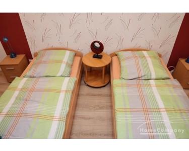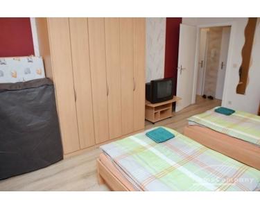 Schlafzimmer mit 2 Einzelbetten 90x200 cm, Kleiderschrank, TV, Zustellbett, Kinderbett.