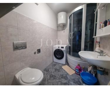 Wir verkaufen eine Wohnung im zweiten Stock eines Wohnhauses mit einer Gesamtfläche von 68m2. Es besteht aus zwei Schlafzimmern, einem Flur, einer Küche mit Esszimmer, einem Wohnzimmer, einem Badezimmer und einer geschlossenen Loggia mit wunderschönem Blick auf das Meer. Die Wohnung verfügt über einen Abstellraum im Keller. Immobilien zum ganzjährigen Wohnen, aber auch zur touristischen Vermietung.