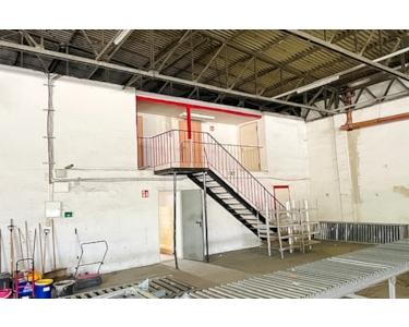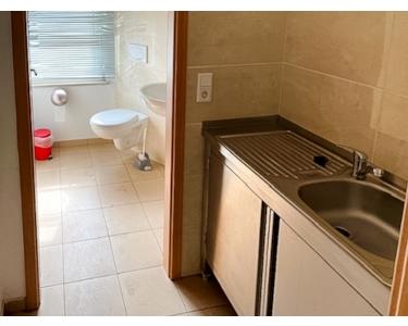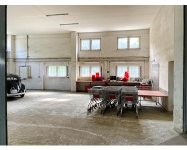 Zusätzlich stehen im ca. 100 m² großem Obergeschoss sanitäre Anlagen, eine Küche, zwei Büroräume und ein Personalraum zur Verfügung.