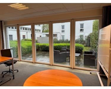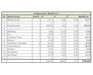 Der Gebäudekomplex wurde im Jahr 2008 errichtet und befindet sich in einem sehr gepflegten Zustand. Weitere Büroflächen im Gebäude werden aktuell durch eine Krankenkasse genutzt. Die Mietfläche verfügt über einen separaten Eingang mit Automatiktür und eigener postalischer Adresse. Neben den gewerblichen Nutzflächen gibt es noch weitere Wohnungen sowie eine Tiefgarage mit Kfz-Stellplätzen im Objekt. Die hellen Büros mit abgehängter Rasterdecke sind alle sehr gut belichtet. An den Mitarbeiterbereich angeschlossen befindet sich eine kleine Terrasse mit Blick in den Innenhof. Vom zentralen (innenliegenden) Server-/Archivraum werden die Datenleitungen (CAT-7) in die einzelnen Räume geführt. Über Bodentanks im Fussboden können die jeweiligen Arbeitsplätze vernetzt werden. Neben dem Mitarbeiterraum mit Teeküche gibt es dann noch je ein Damen- u. Herren WC sowie ein barrierefreies WC mit dezentraler Warmwasseraufbereitung. Im hinteren Bereich der Mietfläche befindet sich ein großzügiger Besprechungs-/Veranstaltungsraum der multifunktional genutzt werden kann.