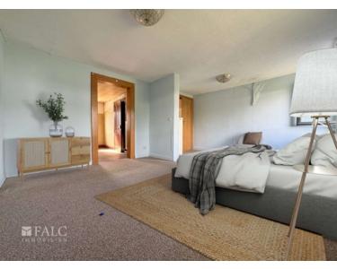 Eine Treppe im Eingangsflur führt zum ersten Obergeschoss, wo ein weiterer Flur zu finden ist. Dieser Flur bietet Zugang zu einer Treppe, die zum Dachboden führt, sowie zu zwei zusätzlichen Schlafzimmern. Dieses ist in einem baufälligen Zustand und steht zum Abriss bereit.