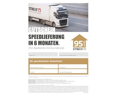 Im Jubiläumsangebot von STREIF gibt es ein Haus, das zur Hälfte eines Doppelhauses gehört. Jedoch ist das Grundstück, auf dem das Haus gebaut werden soll, NICHT im Preis inbegriffen.