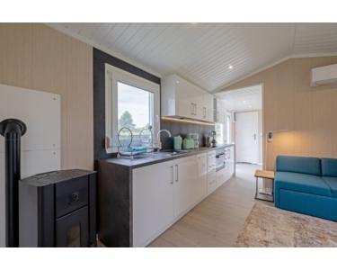 Es stehen insgesamt 3 Zimmer zur Verfügung. Das Wohnzimmer mit offener Küche sorgt für ein großzügiges Raumgefühl. Die Einbauküche ist mit Unter- und Hängeschränken, Küchenarbeitsplatte, Einbauspülbecken, Kühlschrank, 4-Kochzonen Induktionsherd, Backofen und Dunstabzugshaube ausgestattet. In der Küchenzeile ist ebenfalls bereits eine Waschmaschine integriert. Auch das Badezimmer ist mit einer 120 cm Duschkabine, Waschbecken mit Unterschrank, Hängeschrank mit Spiegel und Stand-WC voll funktionsfertig. Die überdachte Außenterrasse mit Brüstung rundet das Angebot ab.