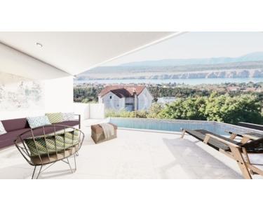 Jadranovo, moderne Doppelhaushälfte mit Pool in Roh Bau