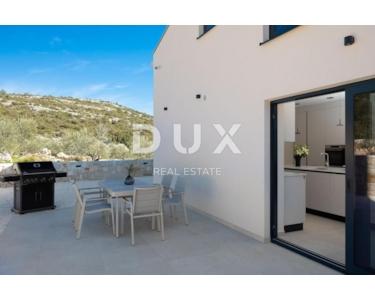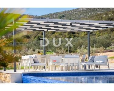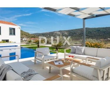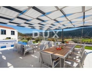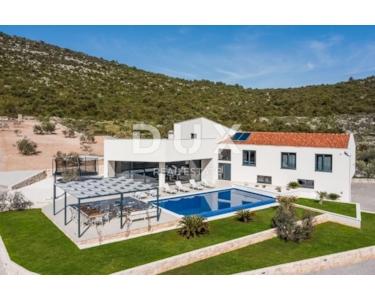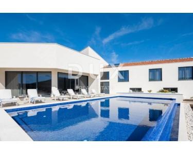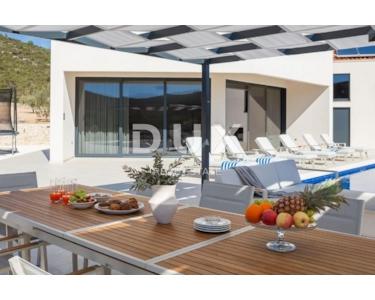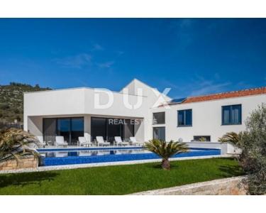 Luxusvilla in toller Lage in der Nähe von Trogir. Es ist ein äußerst modernes Design mit sorgfältig gestaltetem Innen- und Außenbereich. Die Villa besteht aus 2 Etagen (Erdgeschoss und 1. Stock), die mit hochwertigen Materialien ausgestattet sind. Das Gebäude verfügt außerdem über einen Keller. Es hat eine Gesamtwohnfläche von 310 m2 und liegt auf einer Grundstücksfläche von 7000 m2. Im ersten Stock gibt es ein Badezimmer, eine Küche mit Esszimmer und ein geräumiges Wohnzimmer mit Blick auf den Außenpool. Der Außenpool hat eine Fläche von 66 m2 und um ihn herum gibt es Gartenmöbel sowie einen überdachten Essbereich im Freien, der zum Sommerurlaubsgenuss einlädt. Im zweiten Stock der Villa befinden sich 5 Badezimmer und 5 Schlafzimmer. Die Villa zeichnet sich durch eine ruhige Lage, äußerst modernes Design und einen mit mediterranen Pflanzen angelegten Garten aus. Was die Immobilie außerdem auszeichnet, ist der freie Blick in die Natur. Die Villa verfügt über eine Garage von 35 m2 mit zwei Parkplätzen und zwei Außenparkplätzen. Die Entfernung zum Meer beträgt 1 km und 13 km Luftlinie vom Zentrum von Trogir. Es ist 17 km vom Flughafen Split entfernt. Es stellt ein hervorragendes Angebot dar, sei es für die touristische Vermietung oder für den Urlaub in den Sommermonaten. Sehr geehrte Kunden, die Agenturprovision wird gemäß den Allgemeinen Geschäftsbedingungen berechnet: www.dux-nekretnine.hr/opci-uvjeti-poslovanja