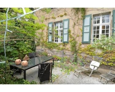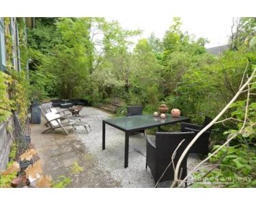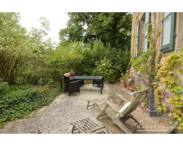 Geschmackvolles Tageslichtbad , Dusche mit Blick in den idyllischen Garten mit großem Esstisch zur Nutzung, Stellplatz direkt am Haus möglich, bei Bedarf kann ein weiterer Stellplatz angemietet werden.