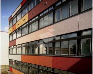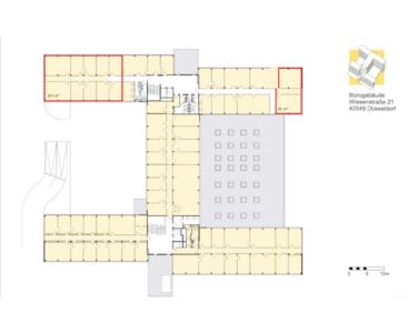 Dieser Gebäudekomplex bietet auf vier Etagen eine zeitgemäße Mischung aus Büro-, Service- und Hallenflächen in unterschiedlichen Größen. Die großzügigen Fensterfronten und hohen Decken sorgen für helle, einladende Arbeitsräume, die ein angenehmes Ambiente schaffen.