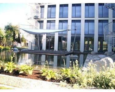 Dieses großzügige und repräsentative Bürogebäude ist ein echtes Highlight im Traditionsviertel Obersendling. Es besteht aus zwei Gebäudetrakten, die durch ein gläsernes Treppenhaus verbunden sind. Hinter dem Gebäude befindet sich ein wunderschön angelegter Garten mit einem kleinen See und einem Holzsteg. Die raumhohe Verglasung sorgt für lichtdurchflutete Räume und eine angenehme Arbeitsatmosphäre. Das Objekt verfügt über eine Tiefgarage mit 3 Duplexparkern (à € 70,00) und einem Einzelstellplatz (à € 100,00). Im Untergeschoss sind ca. 188 m² Lagerfläche (à € 7,00) anmietbar.