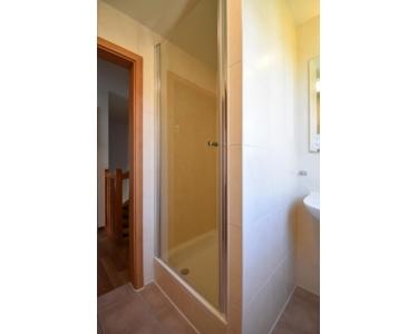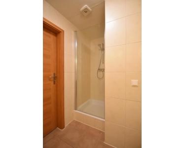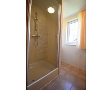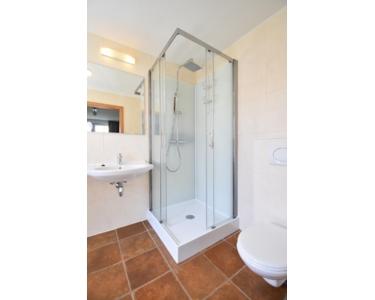 Das letzte Badezimmer hat eine neue Duschkabine und ein Waschbecken