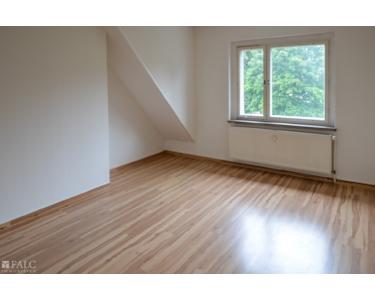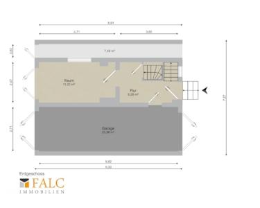 Hier finden Sie im EG die Garage, den Eingang und einen Lagerraum. Die Wohnung befindet sich im ersten und im Dachgeschoss. Im ersten Geschoss finden Sie Wohnzimmer, Bad und Küche. Aus der Küche gelangen Sie auf einen Balkon mit Südausrichtung. Im Dachgeschoss finden Sie ein großes Zimmer sowie zwei weitere abgetrennte Zimmer. Hier gibt es Modernisierungsbedarf und so können Sie das gesparte Geld (im Vergleich zum hochwertigeren Neubau) gut für schöne Böden oder neue Wandbeläge investieren.