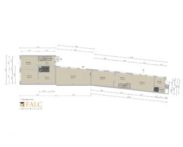 Kommen Sie durch die Eingangstür von der Hauptstraße, betreten Sie das vordere Wohn- und Geschäftshaus. Dort befindet sich im Erdgeschoss ein Gewerbebereich. Sie können diesen Teil auf den Fotos am großen Schaufenster erkennen. Das Geschäft besteht aus dem Raum mit dem großen Schaufenster, einem Backoffice-Bereich sowie einem WC.