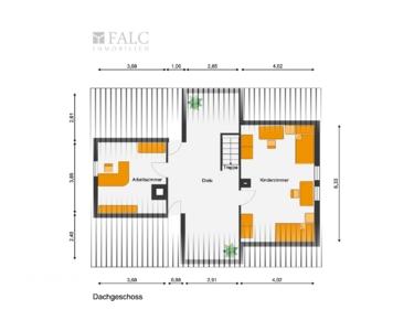 Über eine Treppe gelangt man in das Obergeschoss, das ein weiteres Schlafzimmer, ein Büro, ein geräumiges Wohn/ Esszimmer, sowie ein weiteres Badezimmer bietet. Im Dachgeschoss sind eine große Diele, 2 geräumige Zimmer und weitere Möglichkeiten zum Ausbau.